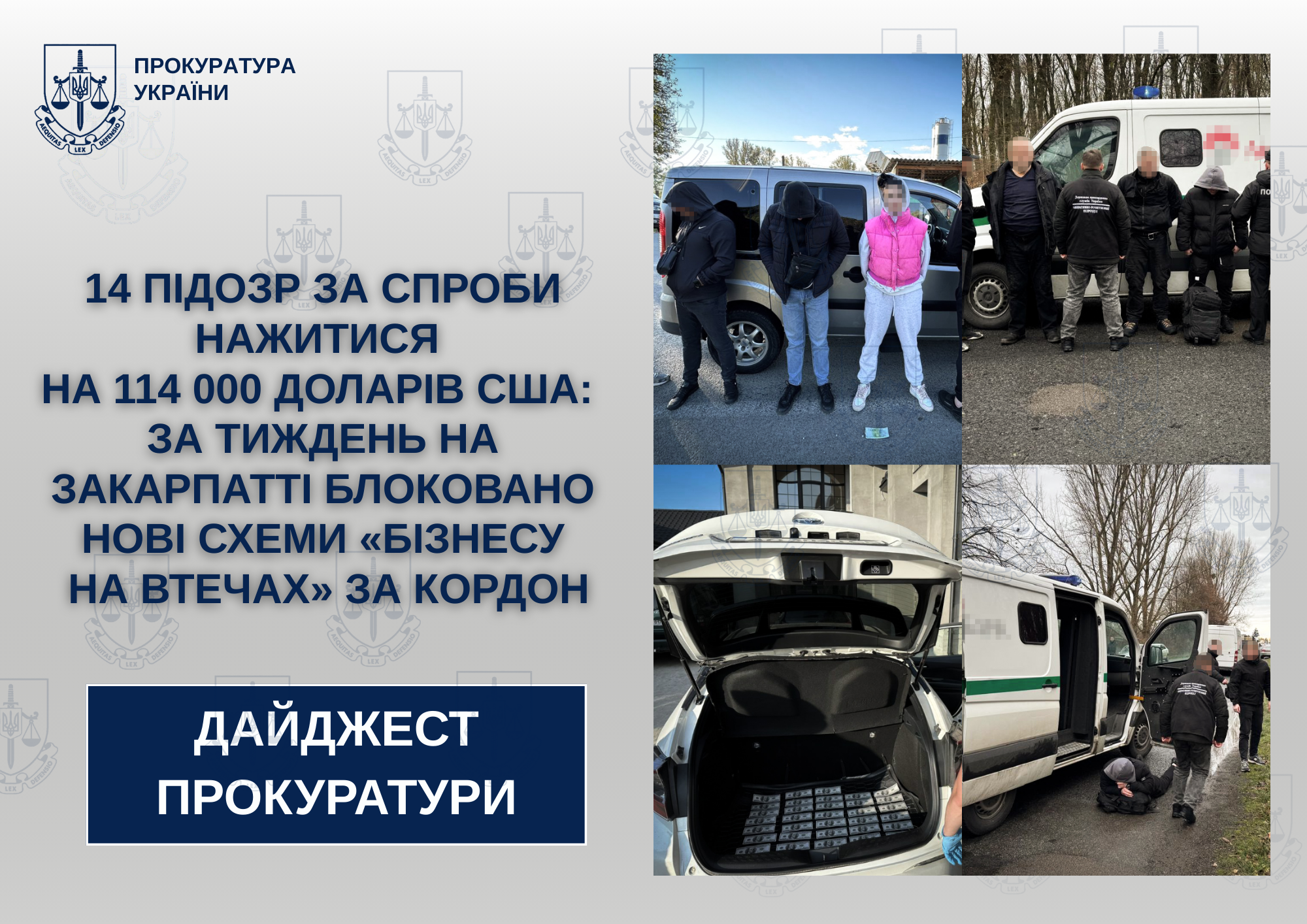 Кримінальні «заробітки на ухилянтах»: 7,6 років ув'язнення, 6 нових підозр та 6 обвинувальних актів до суду – дайджест прокуратури Закарпаття